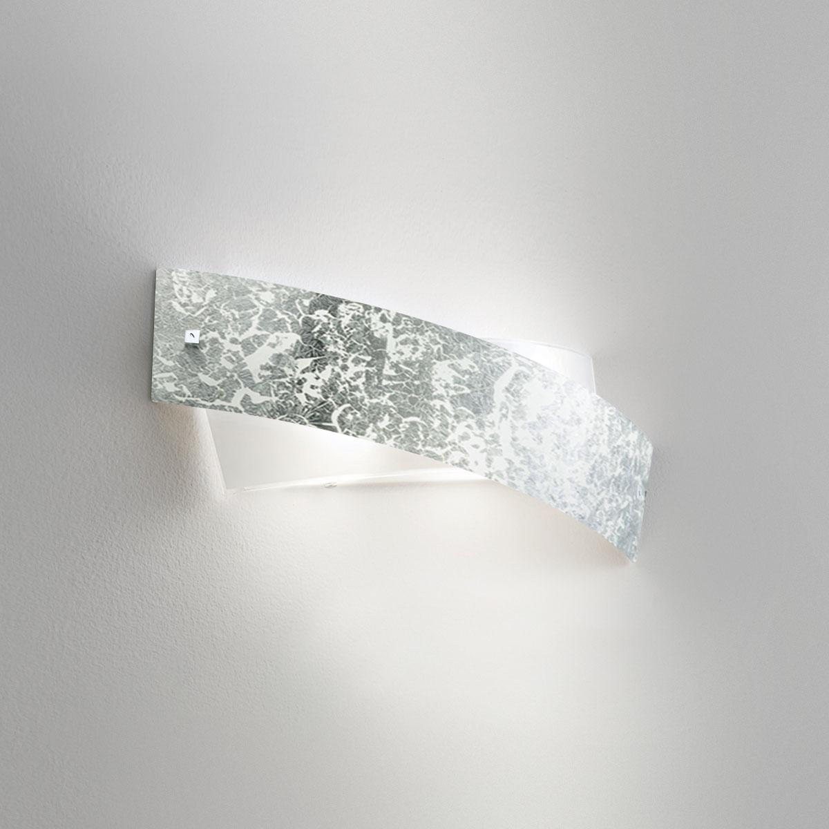 Belo lakiran kovinski okov. Difuzor z barvnim steklom. srebrni lističi. Gloss Finish. Žarnica ni priložena.