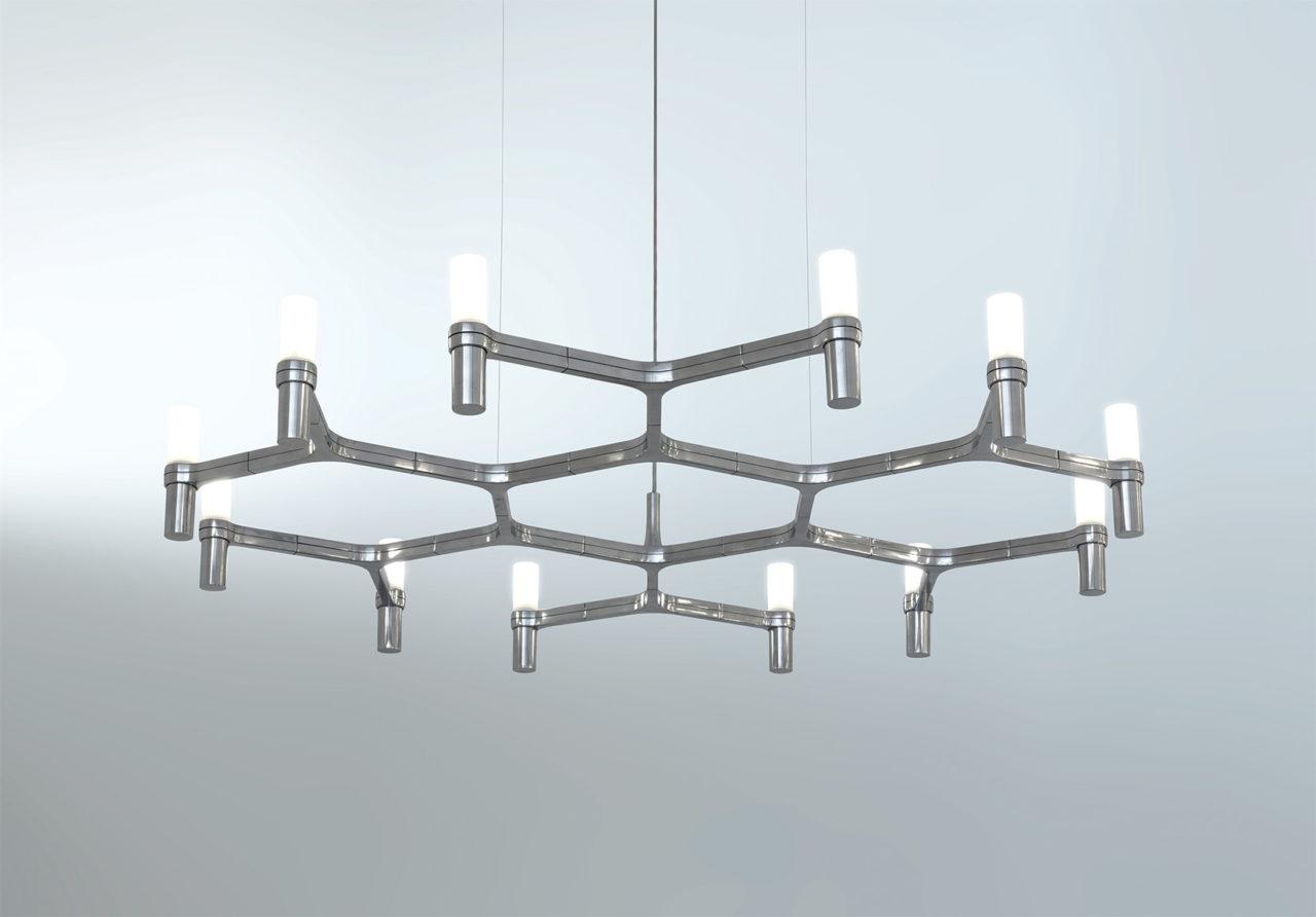 Družina, ki jo sestavljajo viseči lestenci, katerih obliko navdihuje obris snežnega kristala. Modularne svetilke, izdelane s konstrukcijo iz tlačno litega aluminija in difuzorji iz peskanega stekla. Struktura je na voljo v različnih različicah ročno poliranega aluminija, sijajno pozlačenega ali črno prevlečenega, barvanega v mat beli, mat črni ali mat zlati barvi. Razširjena svetloba. Dvojno stikalo za različici Summa in Magnum. Različice za obesek so opremljene s prozornim kablom. Na voljo komplet NEMO LED G9