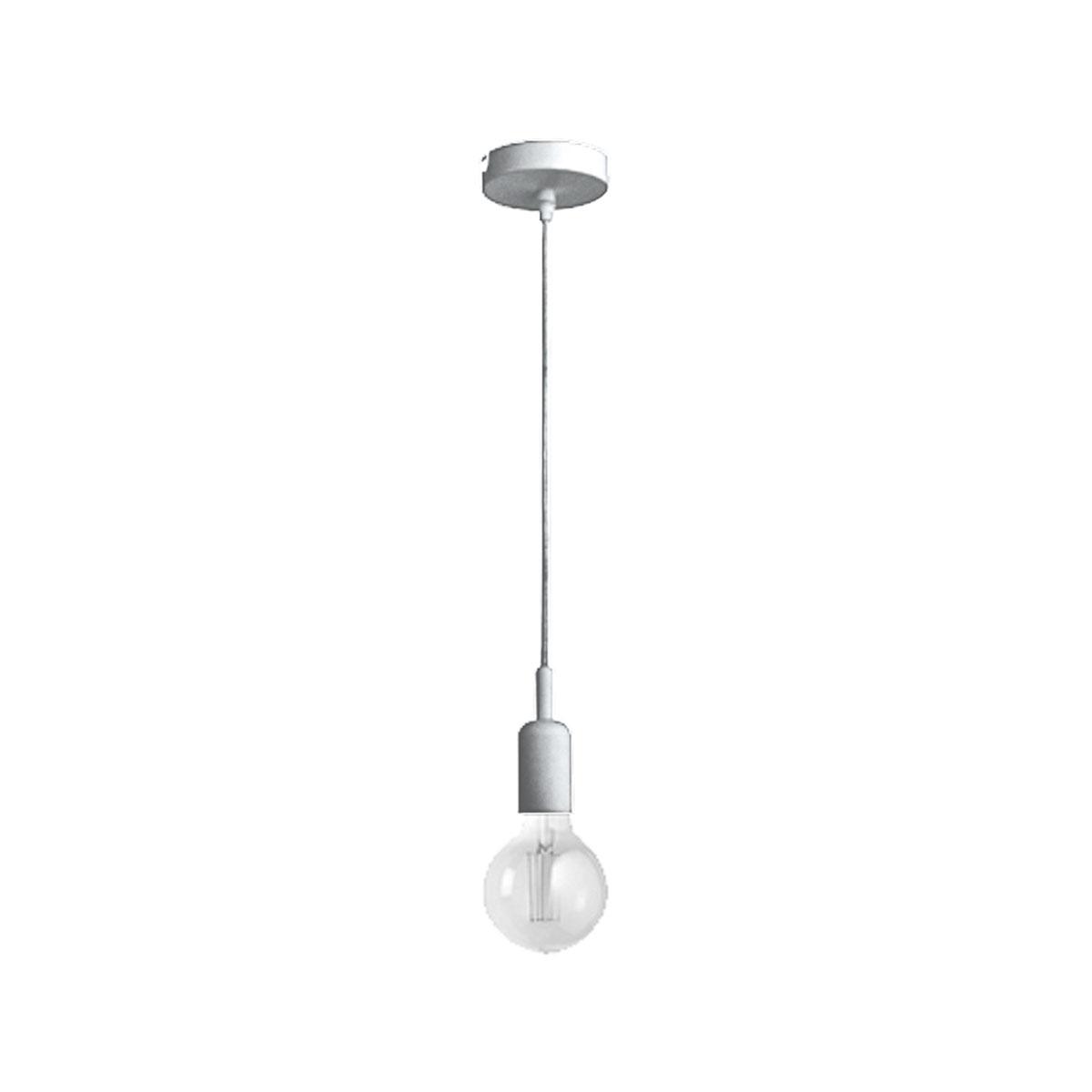 Obesek, pritrjen z 2 m kabla iz blaga. Prerez 2×0,75 mm. Okov E27. Vključuje vrtnico in dodatke za pritrditev vzmetenja. Žarnica ni priložena. Zaključek: mat nikelj s kablom iz sive tkanine.