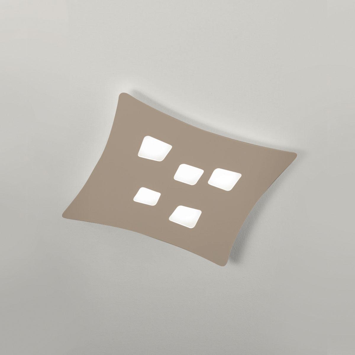 Bel kovinski okvir. Aluminijast difuzor z zaključkom v golobasto sivi barvi. Žarnice niso vključene.