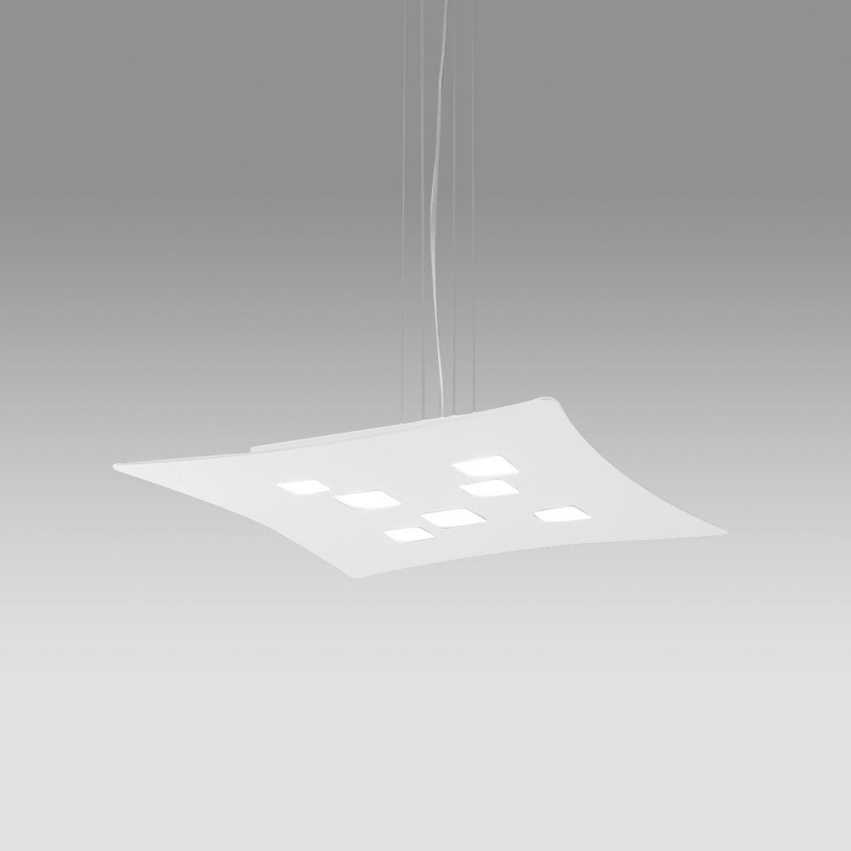Bel viseči kovinski okvir z dvema viroma svetlobe. Aluminijast difuzor z belim zaključkom. Bela streha Finish. Žarnice niso vključene.