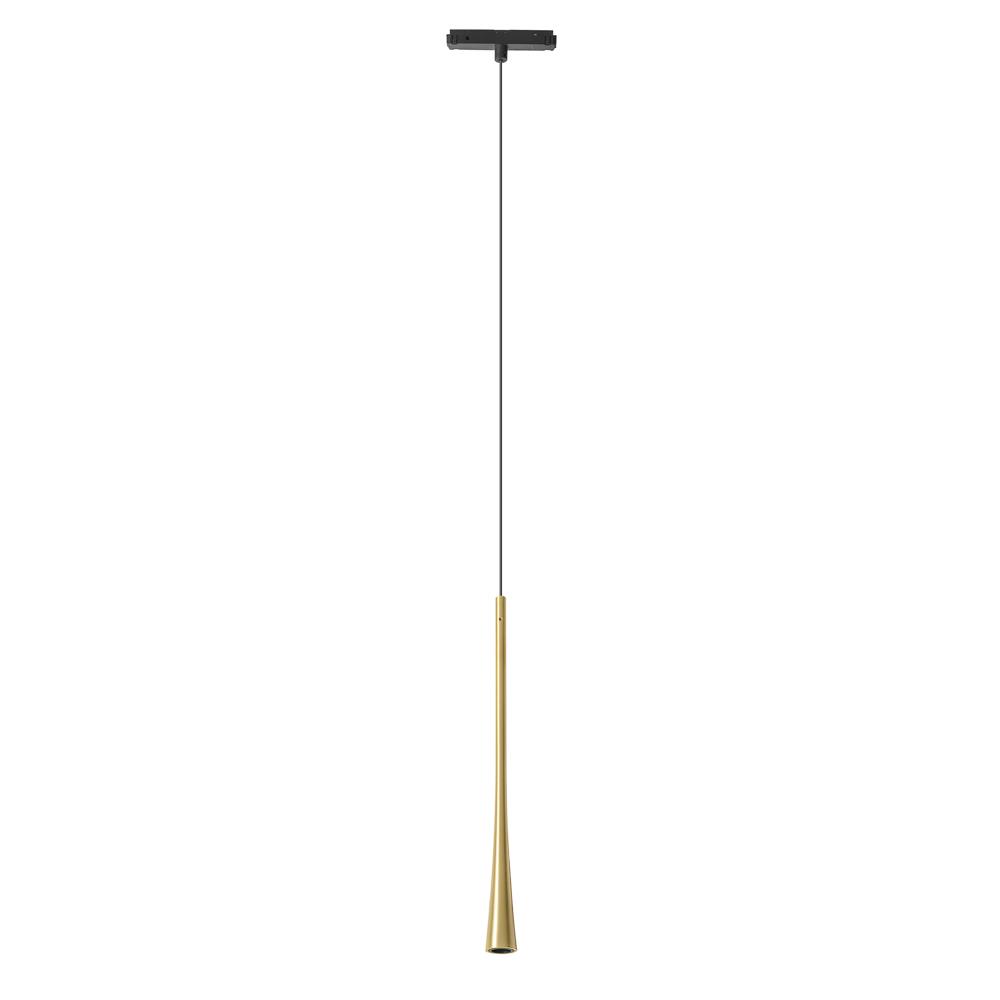 Viseči LED svetlobni moduli z nastavljivo dolžino kabla. Magnetni zaklepni sistem, ki ga je mogoče namestiti v 48V tirnice. Zaključek: zlato.