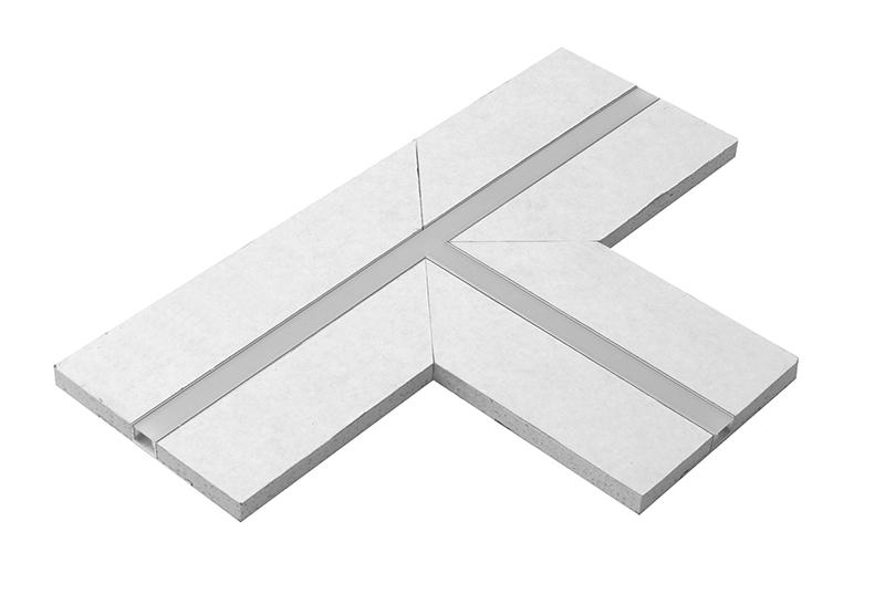 Srednji T sklep. Sestavljen iz več ločenih profilnih kosov, integriranih v 12,5 mm debele mavčnokartonske plošče. Opremljen s prosojnim difuzorjem za enkratno uporabo za britje in barvanje ter zaskočnim mat belim polikarbonatnim difuzorjem. 2 ločena kosa. Za C