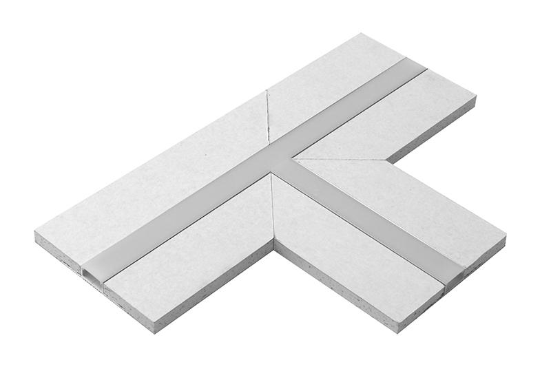 Velik T sklep. Sestavljen iz več ločenih profilnih kosov, integriranih v 12,5 mm debele mavčnokartonske plošče. Opremljen s prosojnim difuzorjem za enkratno uporabo za britje in barvanje ter zaskočnim mat belim polikarbonatnim difuzorjem. 2 ločena kosa. Za Ca