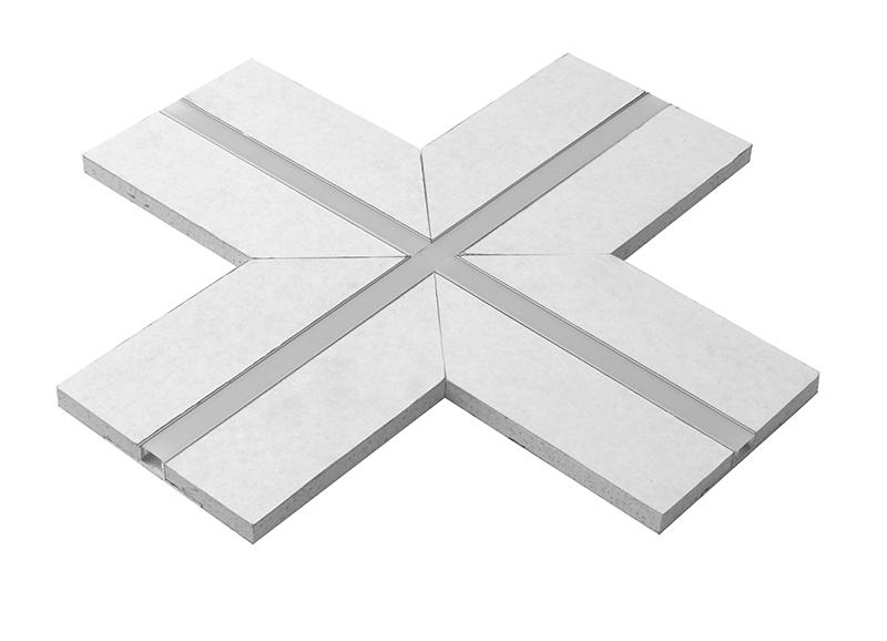 Srednji X sklep. Sestavljen iz več ločenih profilnih kosov, integriranih v 12,5 mm debele mavčnokartonske plošče. Opremljen s prosojnim difuzorjem za enkratno uporabo za britje in barvanje ter zaskočnim mat belim polikarbonatnim difuzorjem. 2 ločena kosa. Za C