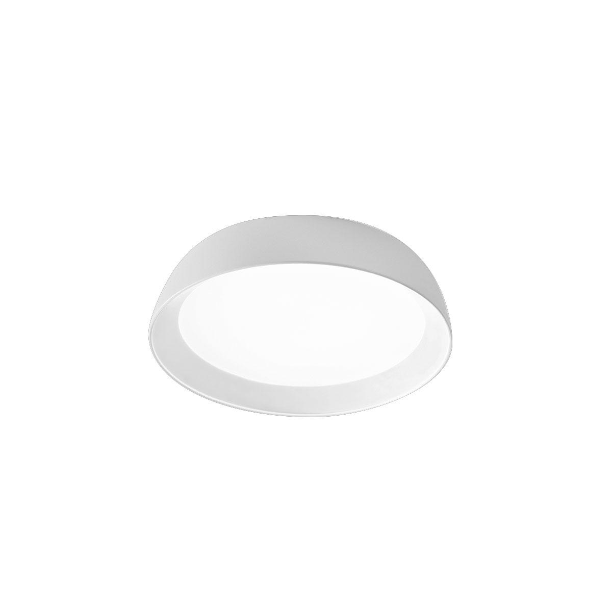 Belo satenirano aluminijasto ogrodje. Bel metakrilatni difuzor iz opala. Fazno rezan zatemnitveni LED svetlobni vir prek zunanjega zatemnilnika + potiska (ni priložen)