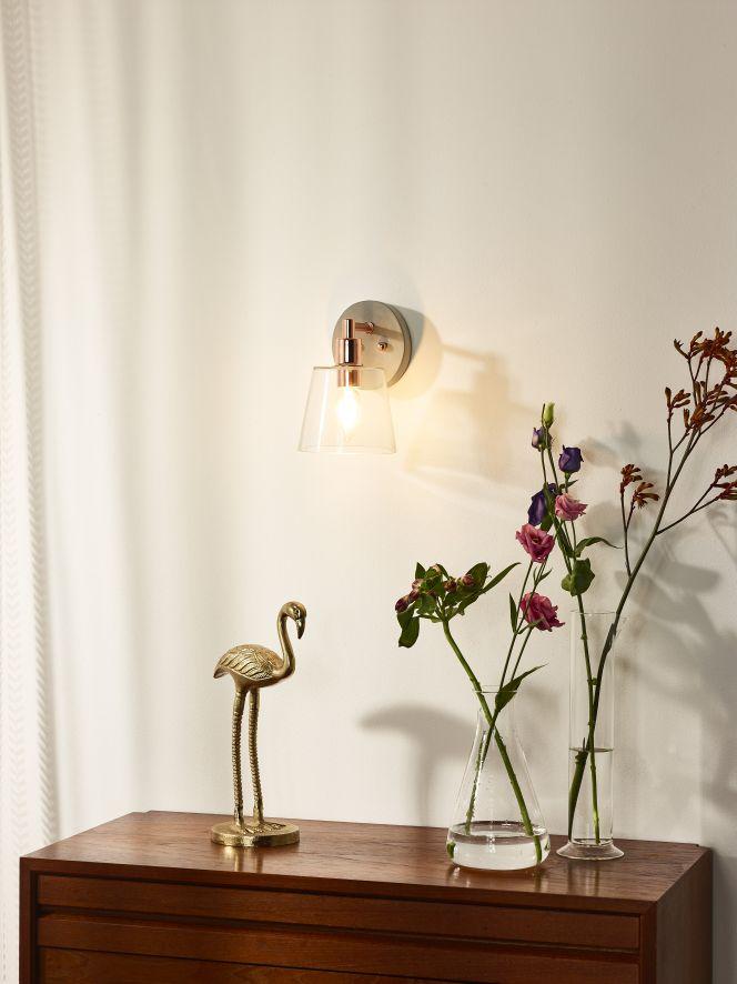 Čas za čaj. Ta stenska razsvetljava Vitri vas pošlje v klasično angleško notranjost. Podoživite čar industrijske revolucije s to pristno razsvetljavo. Naj ta svetlobni element opravi svojo vlogo v vaši dnevni sobi. Brezčasni bakreni krak svetilke drži narobe obrnjeno steklo z nastavkom E14. V to zgodovinsko svetilko postavite svoj (LED) vir svetlobe. To kombinacijo robustne kovine in krhkega stekla preprosto povežite z zatemnilnikom. Pijte zeleni čaj v pravem okolju.
