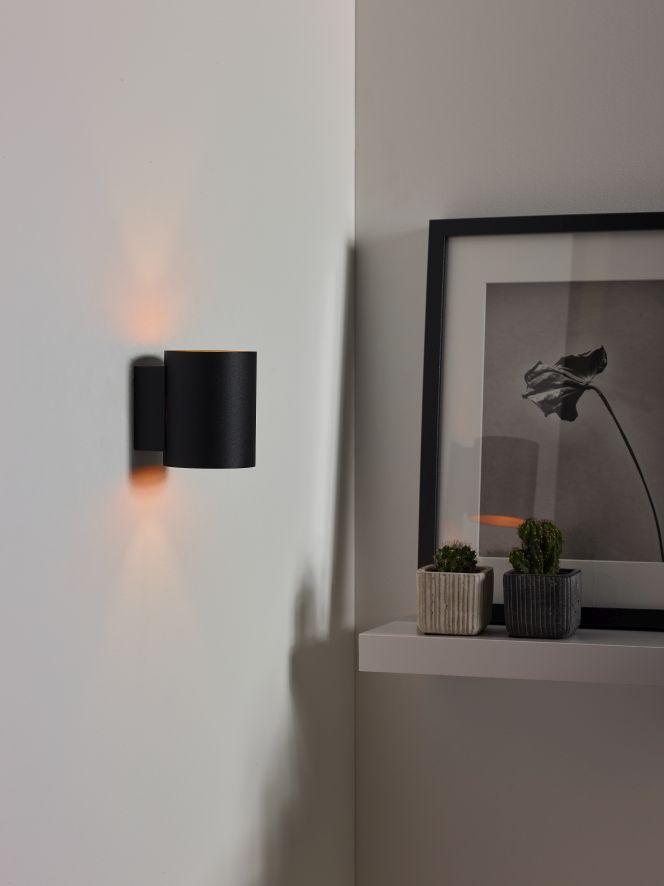 Stenska svetilka Xera s svojo velikostjo od 8 do 10 centimetrov sicer ni največja, a je zaradi edinstvenega dizajna vseeno paša za oči v vsakem modernem interierju. Dvojna porazdelitev svetlobe v cilindrični obliki ustvarja edinstven učinek na opečni, betonski ali barvani steni. S svojo črno barvo daje Xera vaši dnevni sobi, pisarni ali vhodu subtilen industrijski pridih. Notranjost te žarnice je zlate barve, kar ustvarja dodaten topel učinek.