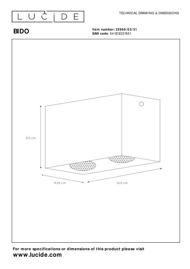 Z dvema svetlobnima točkama v vašem nadometnem reflektorju Bido vsak prostor spremeni v oazo prijetne svetlobe. Pravokotna svetilka je odprta, kar omogoča lep pogled na izbrane vire svetlobe. Če namestite Bido v majhen prostor, kot je stranišče, boste imeli dovolj svetlobe že z enim samim elementom. V kuhinji je najbolje postaviti Bido v nizu. Takšen vzorec koristi njegovi zasnovi. Priključite Bido na zunanji zatemnilnik in imeli boste pravo svetlobo za vsak trenutek dneva.