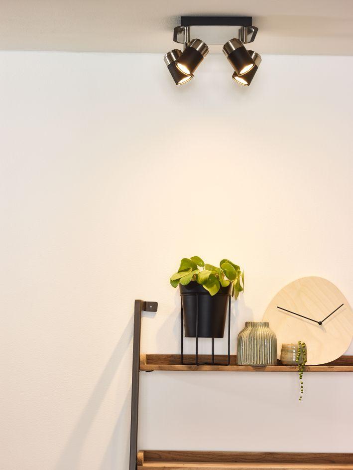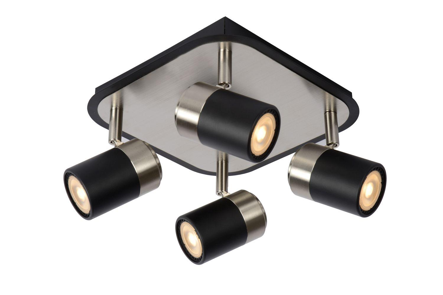 Kvadrat svetlobe. Ta stropni reflektor, imenovan Lennert, ima štiri žarnice. Enega v vsakem kotu montažne plošče. Njegov videz je moderen in robusten. Vsako žarnico je mogoče zasukati in obračati za optimalno svobodo. Enostavno ga lahko priključite tudi na zunanji zatemnilnik. Zahvaljujoč prostorni postavitvi ima sodoben reflektor igrivo plat. Stropna plošča je izdelana iz visokokakovostne kovine. Priloženi so zatemnjeni viri svetlobe.