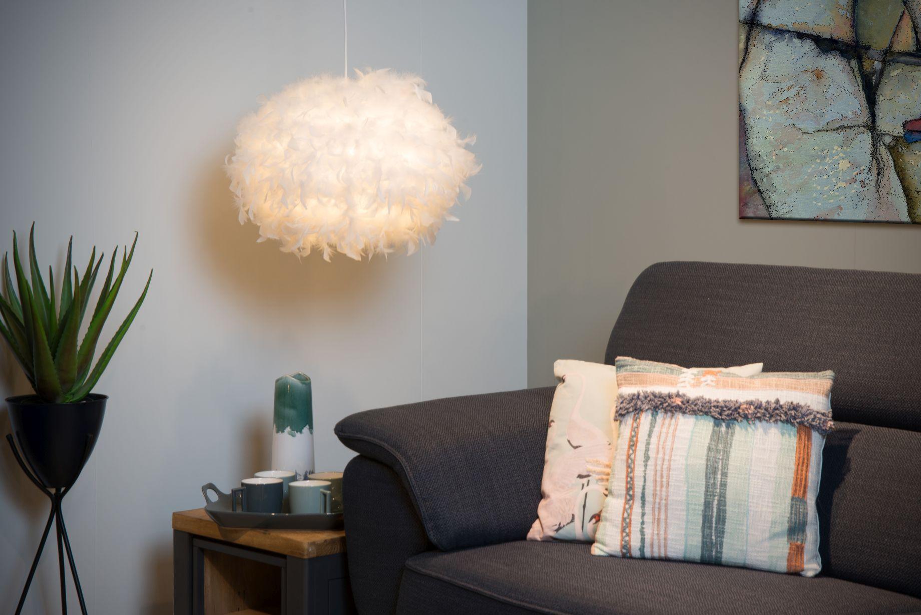 Goosy Soft. Ime te edinstvene viseče luči govori samo zase. Goosy Soft je kombinacija Bombaža in mehkega perja. Kot viseča svetilka v umetniškem interierju ali kot ambient v otroški sobi: mehak značaj Goosy Soft obrodi sadove v več prostorih. Viseča svetilka pozdravlja LED osvetlitev in je združljiva tudi z zatemnilnikom. Imate nizek ali visok strop? To ni pomembno. Dolga vrvica Goosy Soft je enostavno nastavljiva po višini.
