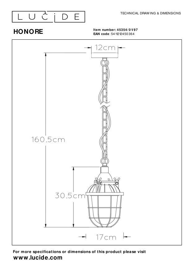 Industrijske viseče luči so kul in privlačne. To je logično, ko pogledaš Honoreja. Viseča svetilka izžareva robustno in pristno vzdušje. Honore trdno visi na kovinski verigi, ki jo lahko skrajšate po svojih željah. Viseča svetilka je idealna za interierje z minimalističnim stilom. V vaši dnevni sobi ali v vašem vložku: Honore poskrbi za to. Brez odvečnih zvončkov in piščalk, ampak prijetna osvetlitev, ki šteje. Majhen namig: za dodaten stil in razred uporabite žarnico z žarilno nitko LED.