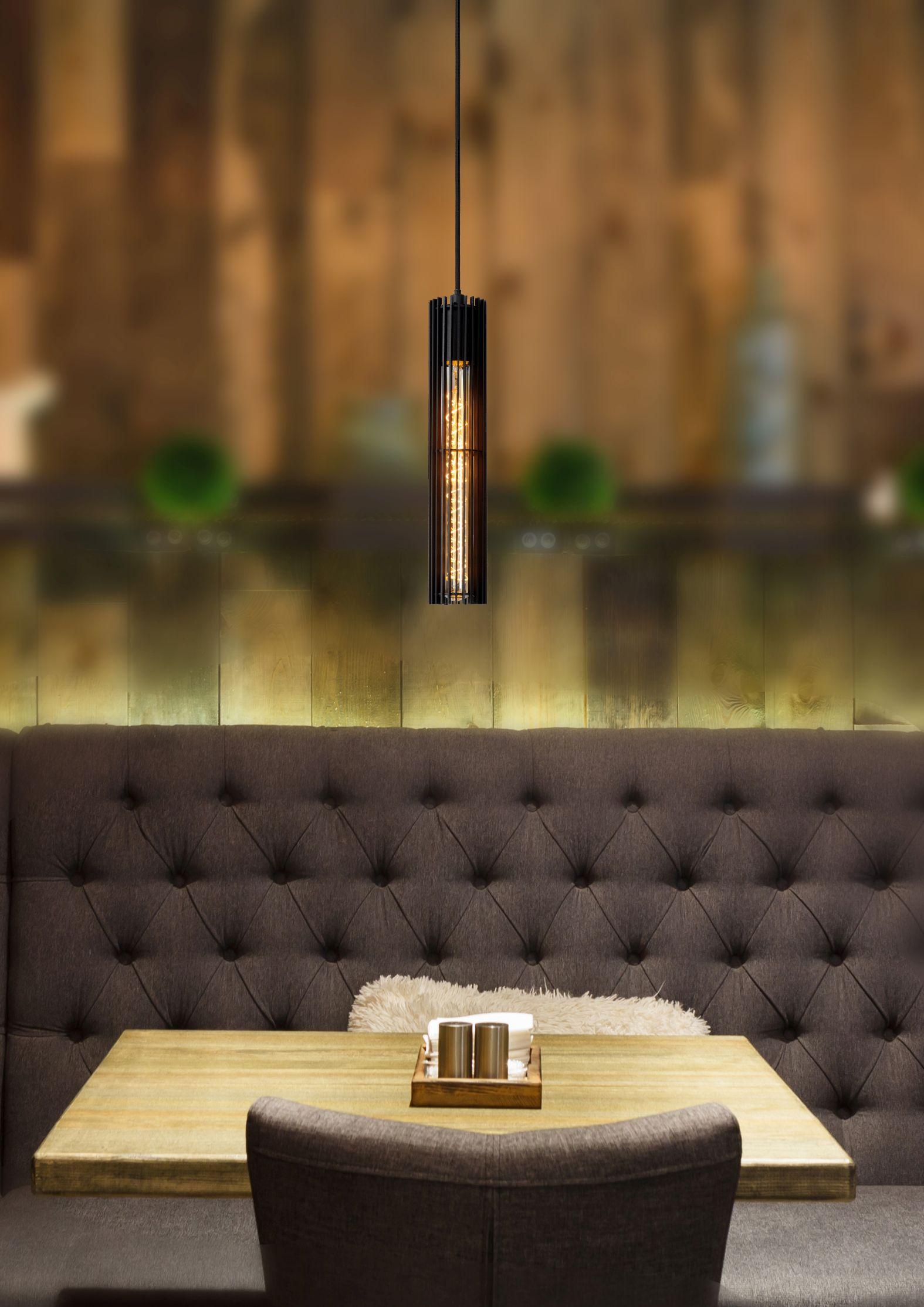 Desetka za vzdušje in udobje zahvaljujoč tej viseči svetilki. Lionel ima eleganten in brezčasen dizajn. Zaradi tega je dodana vrednost v kateri koli sodobni jedilnici ali kuhinji. Fini senčnik s premerom 6,5 centimetra in višino 34 centimetrov je sestavljen iz črnih kovinskih letvic. Ali smo omenili, kako elegantna je ta viseča svetilka? Še toliko bolj, ker ga je mogoče v celoti prilagoditi glede na prostor. Lionel nastavite po višini od 50 do 180 centimetrov in ga priključite na zatemnilnik. Kombinirajte z ustrezno cevno LED žarnico za optimalne rezultate.