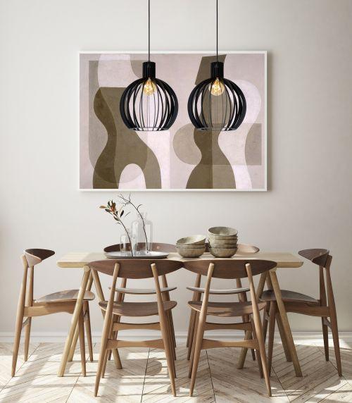 Elegantna viseča svetilka, ki je ne morete prezreti. To je najboljši način za opis Mikaele. Ta viseča svetilka ima 2 žarnici, vsako obdano s sferičnim, odprtim kovinskim senčnikom. Žarnica z žarilno nitko se dobro pokaže in igrivo potiska svojo svetlobo skozi tanke palice. Mikaela je vaša idealna družba za mizo, med prijetno večerjo ali dobrim pogovorom. Zatemnite njegovo svetlobo z zunanjim zatemnilnikom za idealno razpoloženje in prilagodite njegovo višino po želji. Mikaela se raztegne do 190 centimetrov.
