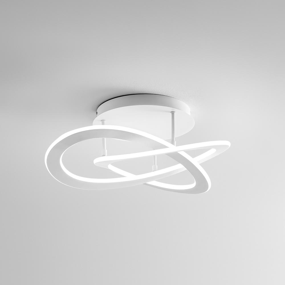 Okvir v satenasto beli barvi. opalno bel silikonski difuzor. Led vir svetlobe. Možnost zatemnitve z zunanjim zatemnilnikom + potiskanje (ni vključeno).